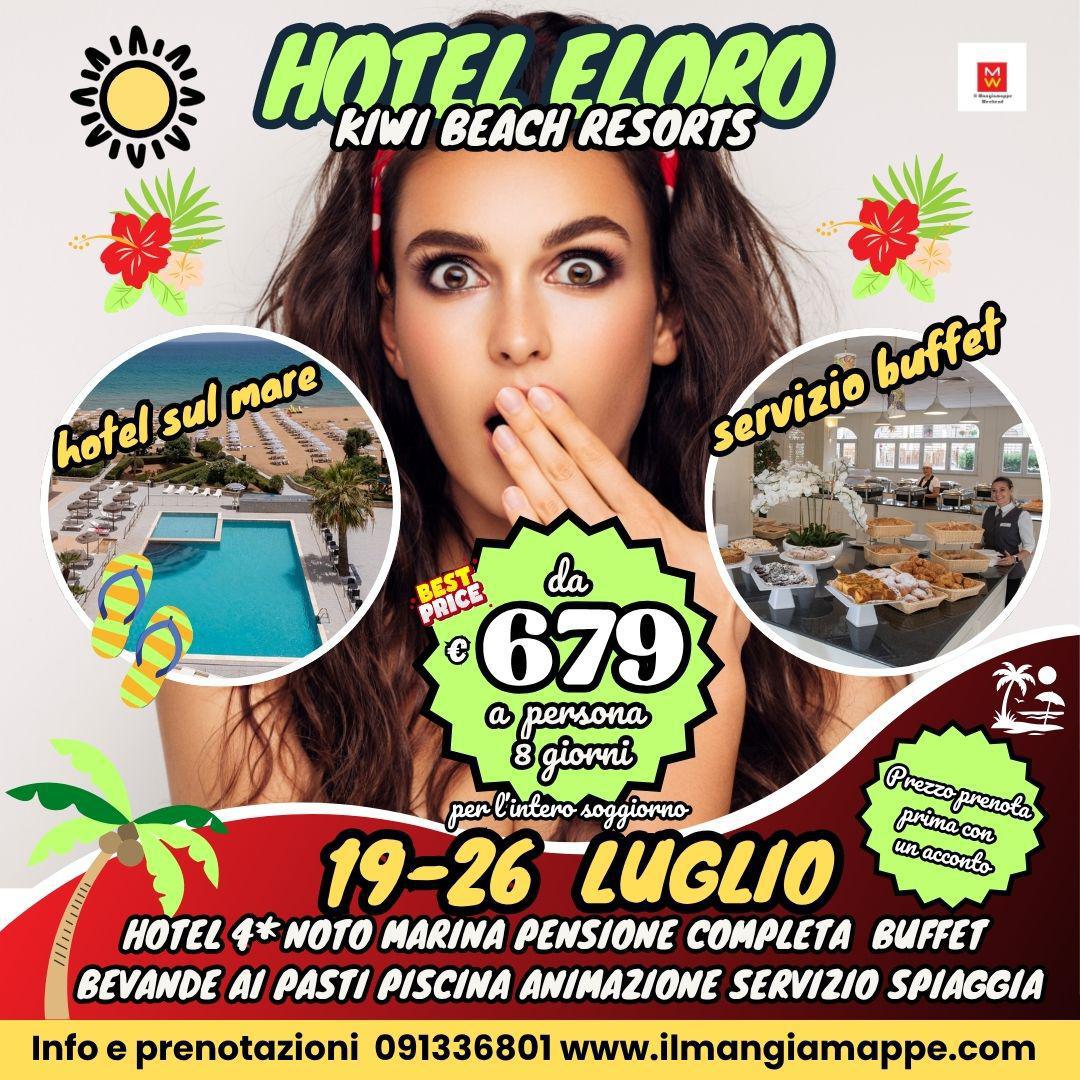 Hotel 4* a Noto Marina (SR) per chi ama il relax weekend di 8gg/7 notti โฌ679 a persona con mezzi propri, in pensione completa con servizio a buffet, animazione, Servizio spiaggia fino a disponibilitร dalla quarta fila in poi.